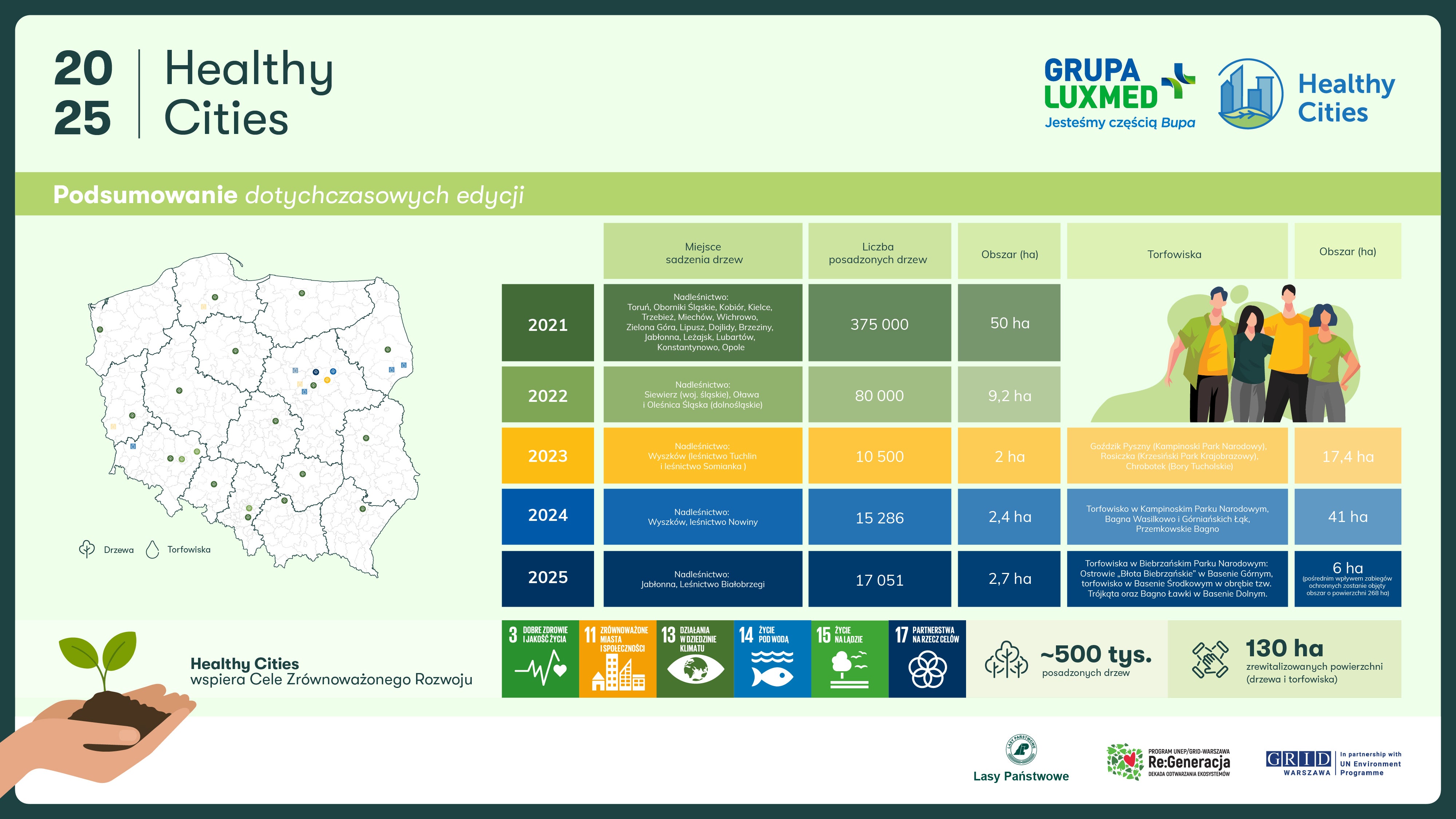 Podsumowanie wpływu środowiskowego w ramach pięciu edycji Healthy Cities