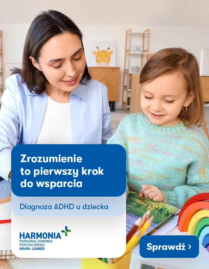 - nadaktywności – czyli trudności w spokojnym siedzeniu np. podczas wyjścia do kina czy słuchania wykładów.