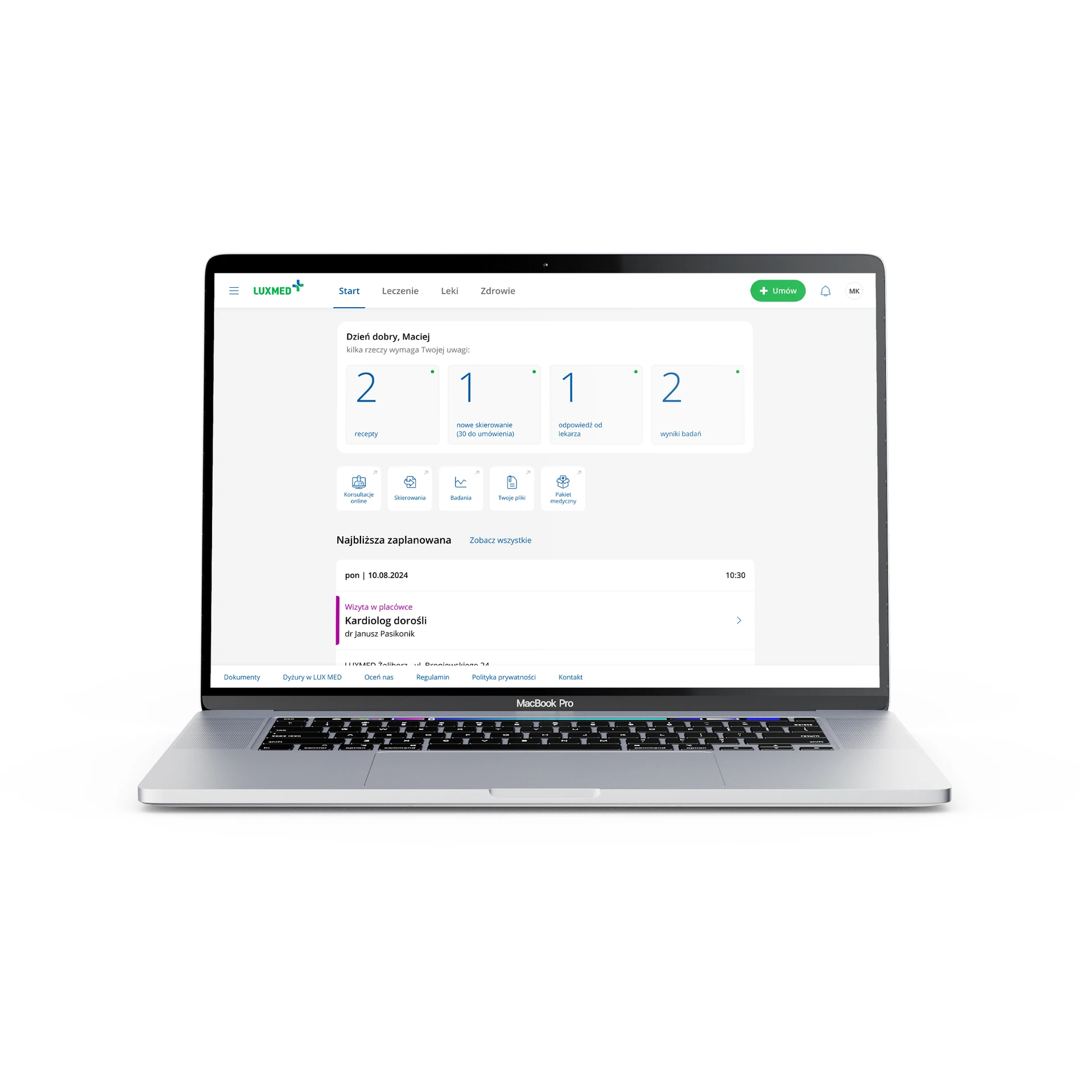 W Portalu umówisz konsultacje, badania, badania Medycyny Pracy i rehabilitację. Pełną listę dostępnych usług sprawdzisz w Portalu.