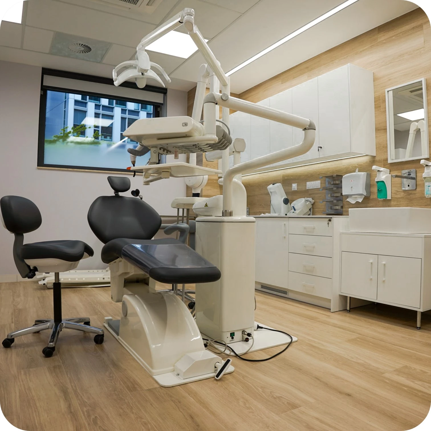 - Specjalny unit stomatologiczny dostosowany do leczenia pacjentów poruszających się na wózku inwalidzkim