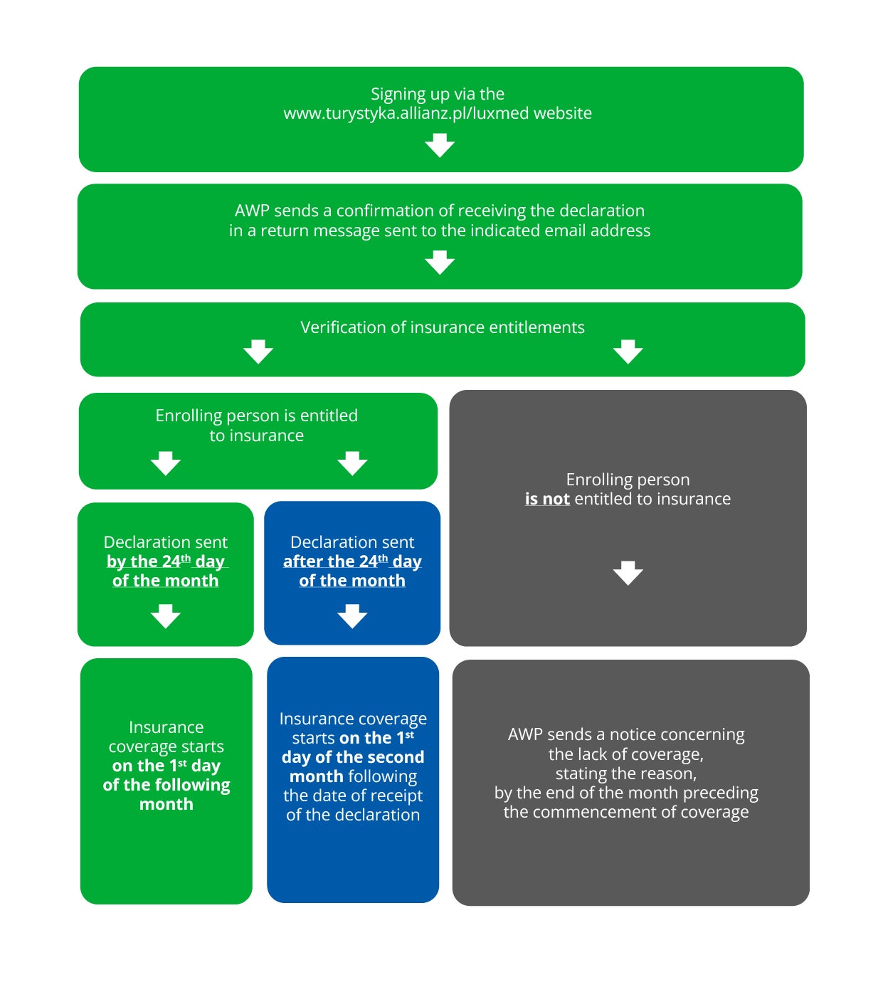 The starting date of the insurance coverage depends on the date of receipt of the AWP enrolment declaration. The assumed date of receipt of the declaration shall be: