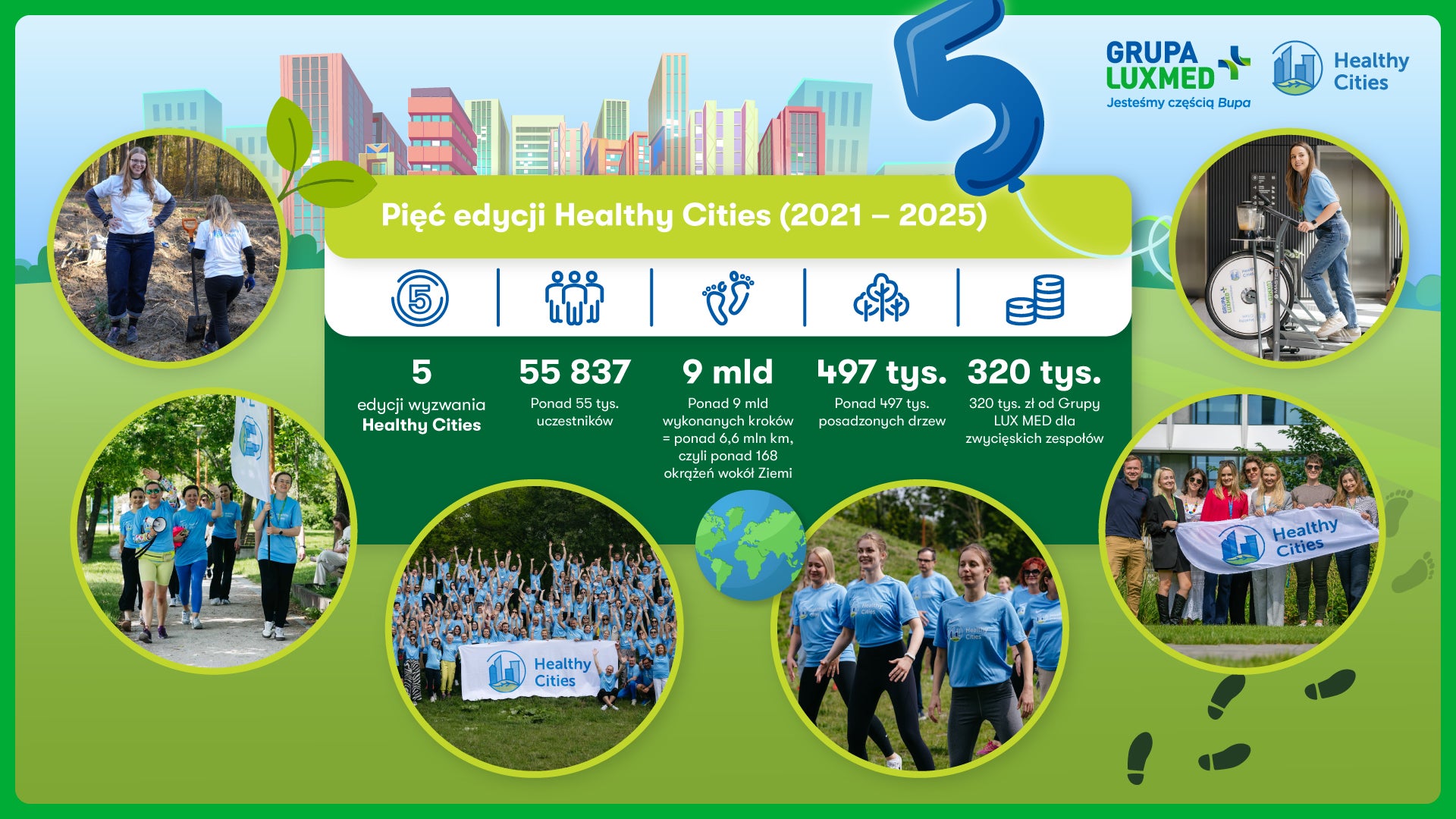 Podsumowanie wpływu środowiskowego w ramach pięciu edycji Healthy Cities